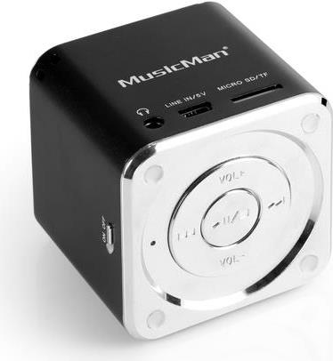 MUSICMAN Mini Soundstation mit hervorragender Sound-Qualität Diese Soundstation aus Aluminium gefertigt. In einem trendigen, modernen Design. Mit blau beleuchtetem Standfuß. Micro SD Karte einstecken und Ihre Musik ...