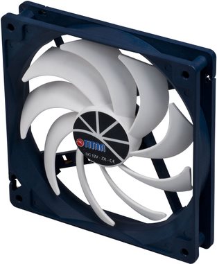 Titan Lüfter Kukri Fan, 120 x 120 x 25 mm, mit Tachosignal, Flüssigkeits-Gleitlager 12 V DC, 61,8 mü/h, 1200 U/min, <24,8 dB(A) (TFD-12025SL12Z/KU)