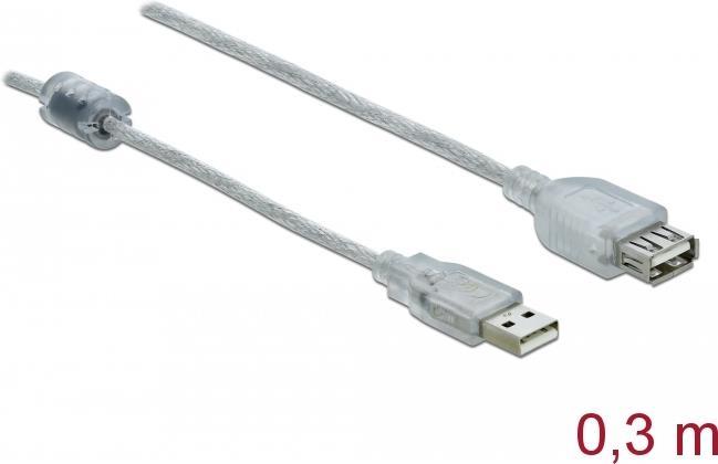 Delock Verlängerungskabel USB 2.0 Typ-A Stecker > USB 2.0 Typ-A Buchse 0,3 m transparent (82244)