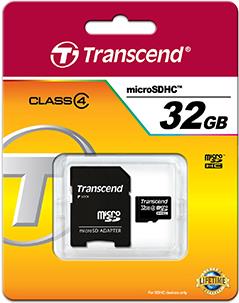 Transcends Class 4 microSDHC-Karten haben eine Mindestschreibgeschwindigkeit von 4 Mb/s und sind eine kostengünstige Wahl, um eine größere Anzahl an Dateien zu speichern.
