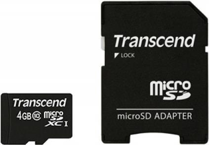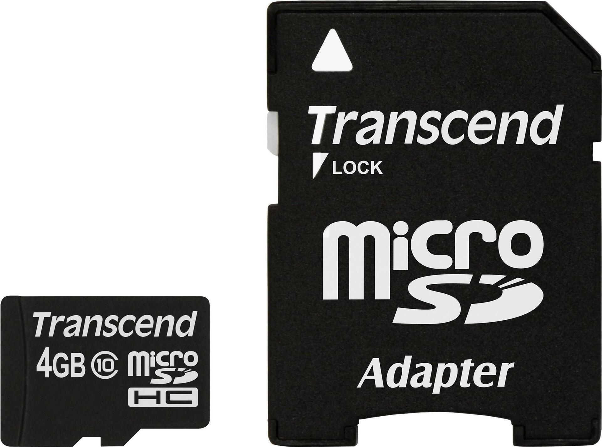 Transcend - Flash-Speicherkarte (microSDHC/SD-Adapter inbegriffen) - 4GB - Class 10 - microSDHC (TS4GUSDHC10)