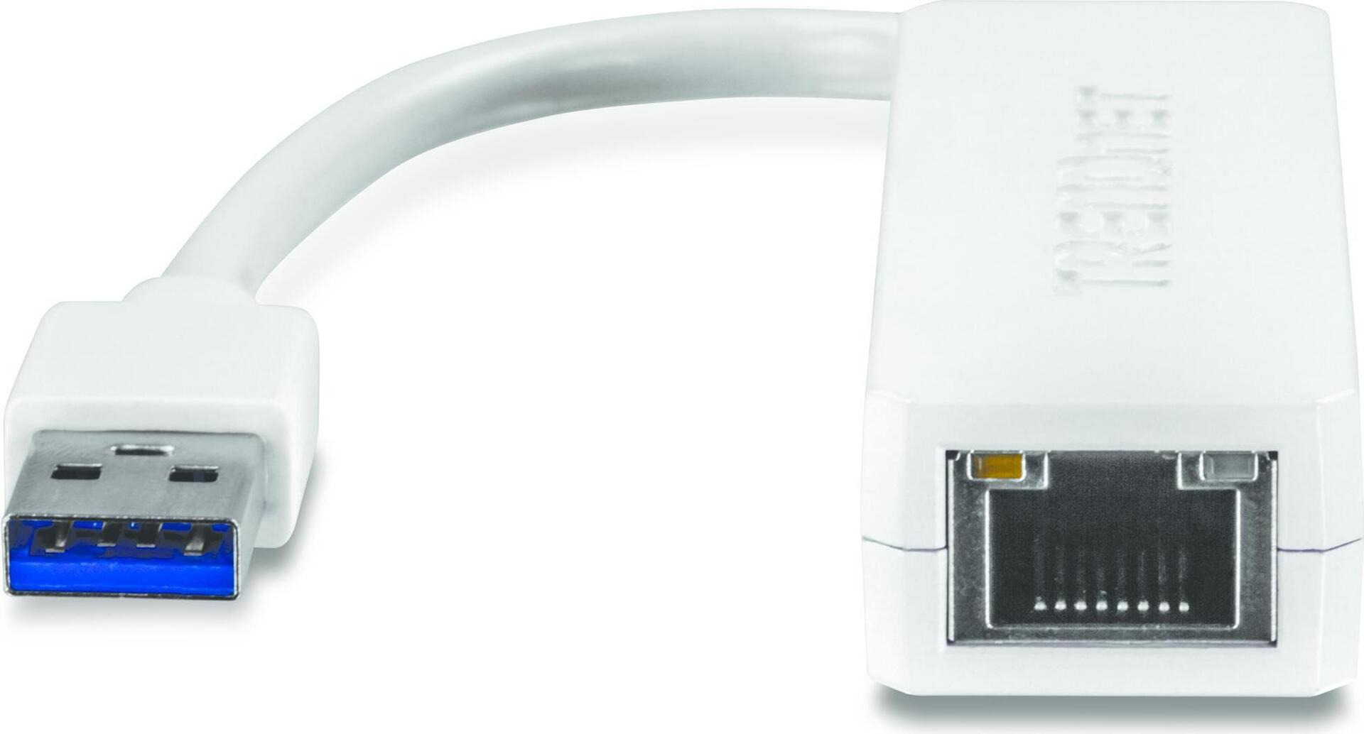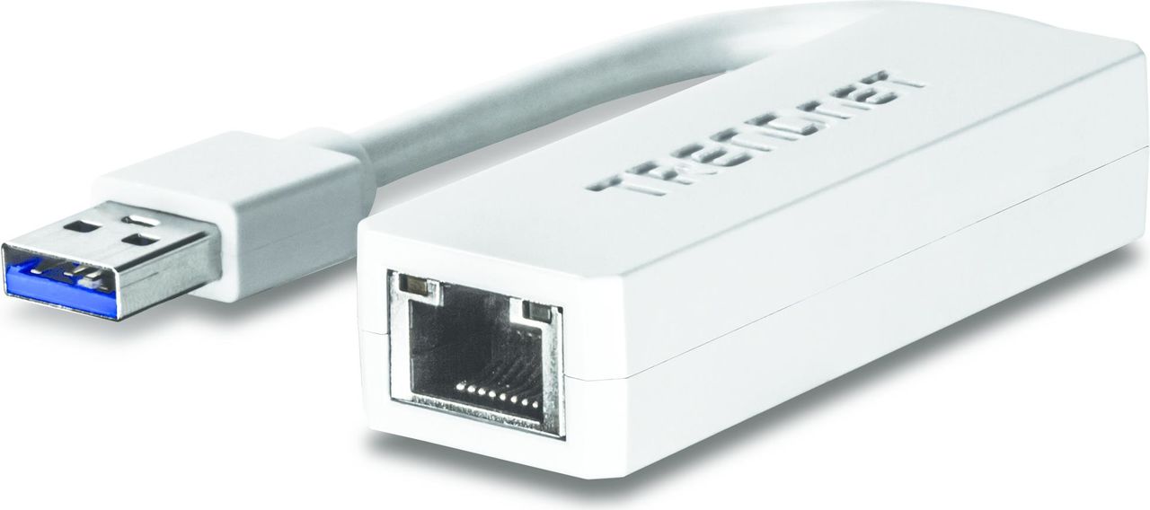 TRENDnets kompakter USB 3.0 Gigabit Ethernet Adapter vom, Modell TU3-ETG, fügt schnell einen Gigabit Ethernet Port zu einem Windows - oder Mac -PC hinzu. Ein SuperSpeed USB 3.0 Port unterstützt Voll Duplex 2 GBit/s Übertragungsgeschwindigkeiten. Der TU3-ETG ist kompatibel mit älteren USB 2.0 und 1.1 Ports.