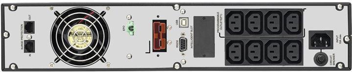 Aufgrund des schlanken Designs benötigt sie nur 2 HE Platz in Ihrem Server Schrank. Die USV kann in 19"-Server Schränke installiert werden oder mit den mitgelieferten Standfüssen als Tower aufgestellt werden.
