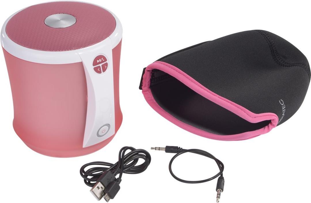 Der Bluetooth Speaker TERRATEC CONCERT BT NEO hält, was sein Name verspricht. Für kabelloses Konzert-Feeling sorgt der Lautsprecher dank Bluetooth 2.1. Alternativ kann die Audio-Wiedergabe auch von einer Speicherkarte erfolgen, dazu bringt der CONCERT BT NEO einen integrierten Micro-SD-Slot mit. Auch ein AUX-Port steht zur Verfügung. Der Speaker glänzt mit 2 x 3 Watt Stereosound und einem 2200 mAh Lithium Polymer Akku für bis zu 5 Stunden Wiedergabe.