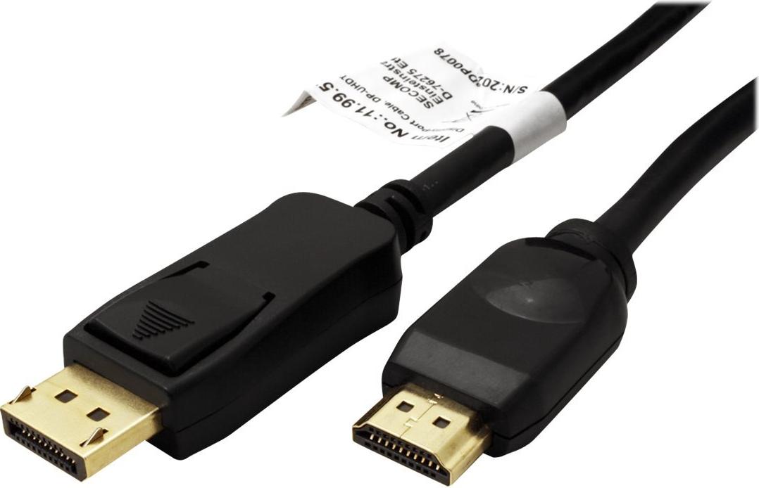 DisplayPort nach UHDTV Kabel zum Übertragen von Inhalten von beispielsweise Ihrer Grafikkarte (DisplayPort) auf Ihren TV (UHDTV) - mit einer Qualität von bis zu 3840x2160 @60Hz, inkl. Audio-Übertragung! UHDTV ist der Standard für die digitale Video-Übertragung im TV-/Multimedia-Bereich für z.B.: Anbindung eines TV-Gerätes mit HDMI-Schnittstelle an ein Abspielgerät mit DisplayPort-Anschluss. Kabel mit einem DisplayPort- und einem HDTV-Stecker. DisplayPort ist signalkompatibel zu HDMI. Hinweis: Ein DisplayPort-UHDTV-Kabel ist nur in einer Richtung verwendbar: der DisplayPort-Stecker ist nur auf der Datenquellenseite verwendbar(z.B. Grafikkarte).