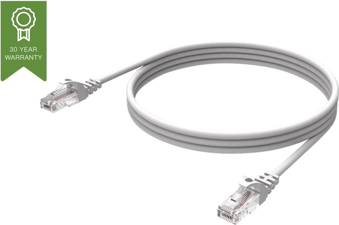 - RJ45 8P8C-Steckeranschluss zu RJ45 8P8C-Steckeranschluss - Farbe: Weiß - U/UTP (nicht abgeschirmt) - Mehrdrähtiger Kupferleiter - Vergoldete RJ45-Stecker mit - Knickschutz - Isolierung: HDPE, - Durchmesser: 0,97 mm - Ummantelung: PVC, Stärke: 0,6 mm; Außendurchmesser: 6,2 mm - Leiterstärke: 24 AWG (7/0,2) - Bandbreite: 250 MHz - Impedanz (?) 100±15 - Laufzeitdifferenz bei 20 ? (ns/100 m) ? 45