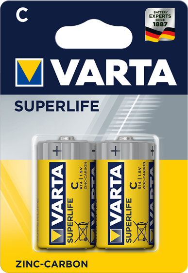 Varta Batterie Zink-Kohle, Baby, C, R14, 1.5V, Super Heavy Duty, Retail Blister Blister (2-Pack) (02014101412)