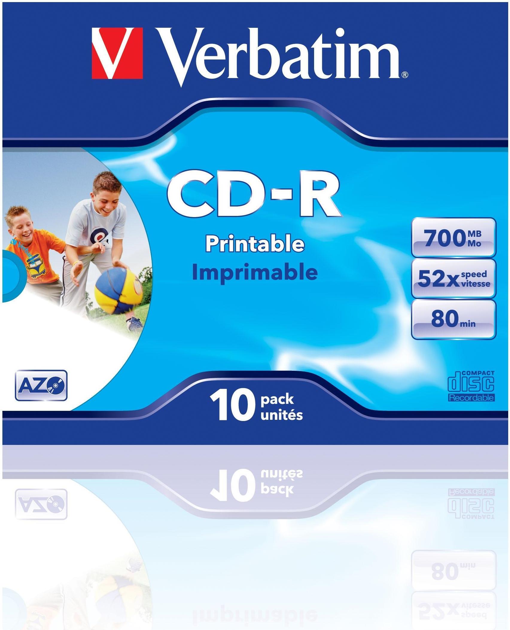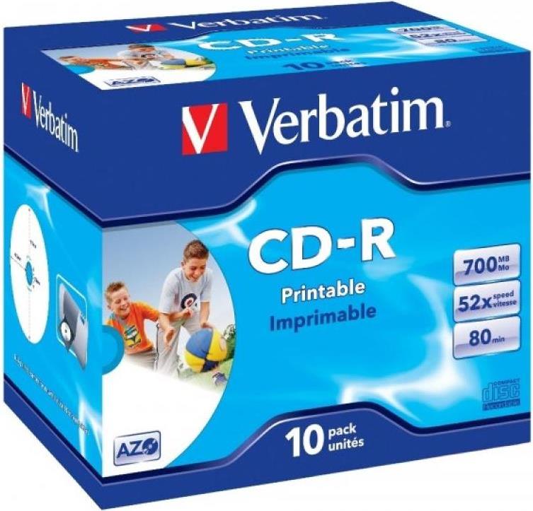 Verbatim - 10 x CD-R - 700 MB (80 Min) 48x - bedruckbare Oberfläche - Jewelcase (Schachtel) - Speichermedium (43325)