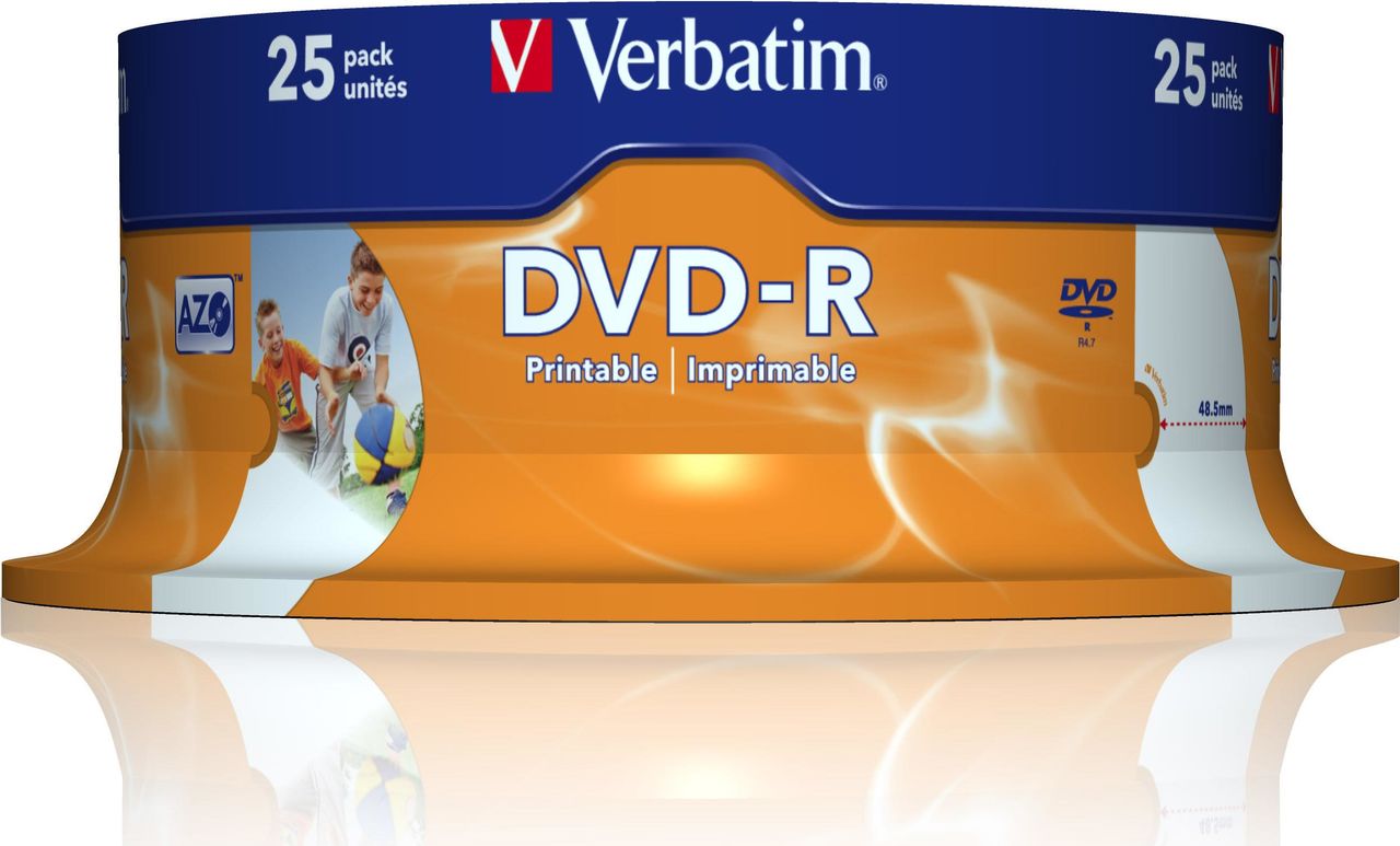 Verbatim - 25 x DVD-R - 4.7GB 16x - breite bedruckbare Fläche für Fotos - Spindel - Speichermedium (43538)