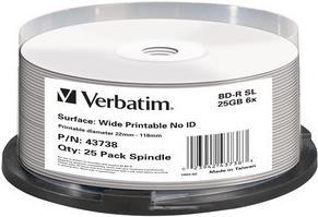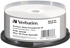 Verbatim - 25 x BD-R - 25GB 6x - breite bedruckbare Oberfläche - Spindel (43738)