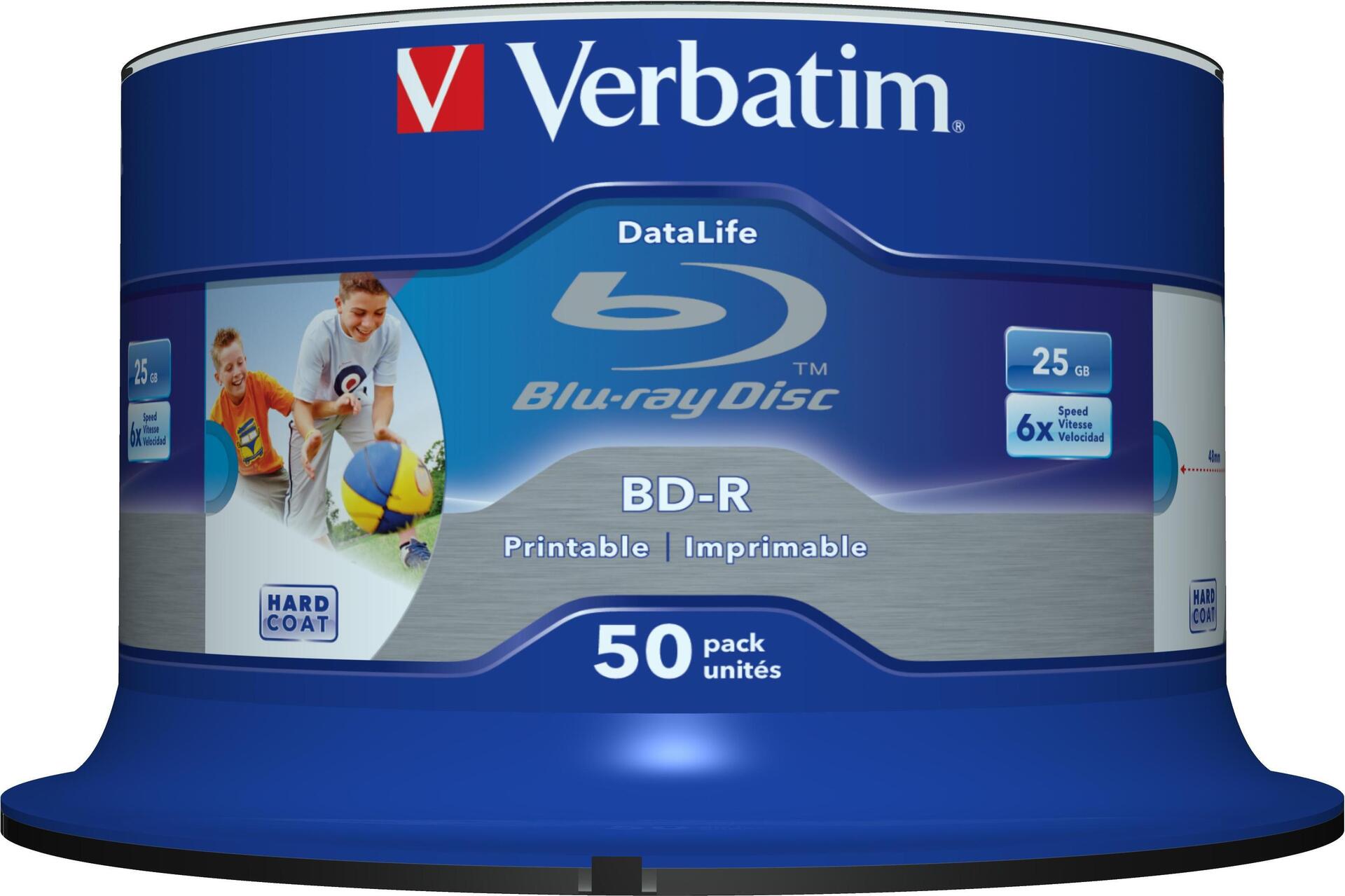 Verbatim DataLife - 50 x BD-R - 25GB 6x - mit Tintenstrahldrucker bedruckbare Oberfläche - Spindel (43812)