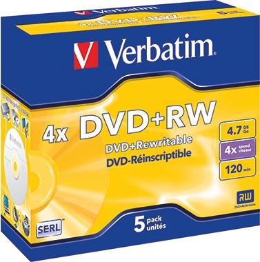 Verbatim - 5 x DVD+RW - 4.7GB 4x - Jewelcase (Schachtel) - Speichermedium (43229)
