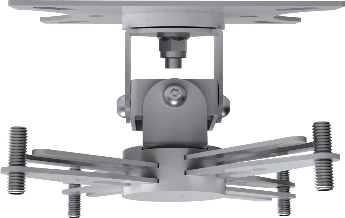 Die Techmount TM-CC ist eine Universal-Deckenklammer für Projektoren, die sich zur sicheren und stabilen Befestigung von 99 % der Datenprojektoren an Decken eignet. Sie eignet sich für Anwendungen, bei denen kein Herunterlassen erforderlich ist; daher ist keine Stange im Lieferumfang enthalten. Der Projektor wird in einem Abstand von 110 mm von der Decke gehalten.