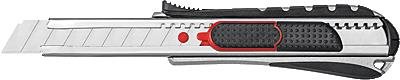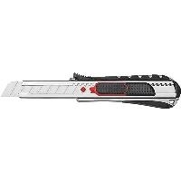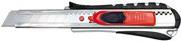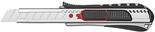 Die Klinge kann jedoch auch konventionell mittels Rasterautomatik vorgeschoben werden. Klingenführung aus Metall. Der ergonomisch geformte Metallgriff mit gummierter Griffzone liegt sicher in der Hand. Mit integrierter Abbrechhilfe im Griffteil. TÜV/GS-geprüft. Lieferung mit eingesetzter Abbrechklinge auf SB-Karte. Farbe: schwarz/rot.