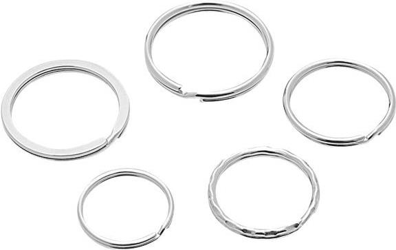 WEDO Metall-Schlüsselringe, Inhalt: 15 Stück im Beutel sortiert mit 3 x 25 mm, 30 mm und 35 mm Durchmesser 30 mm Durchmesser gewellt, 35 mm Durchmesser flach, aus gehärtetem Stahl, glanzvernickelt (262 30015)