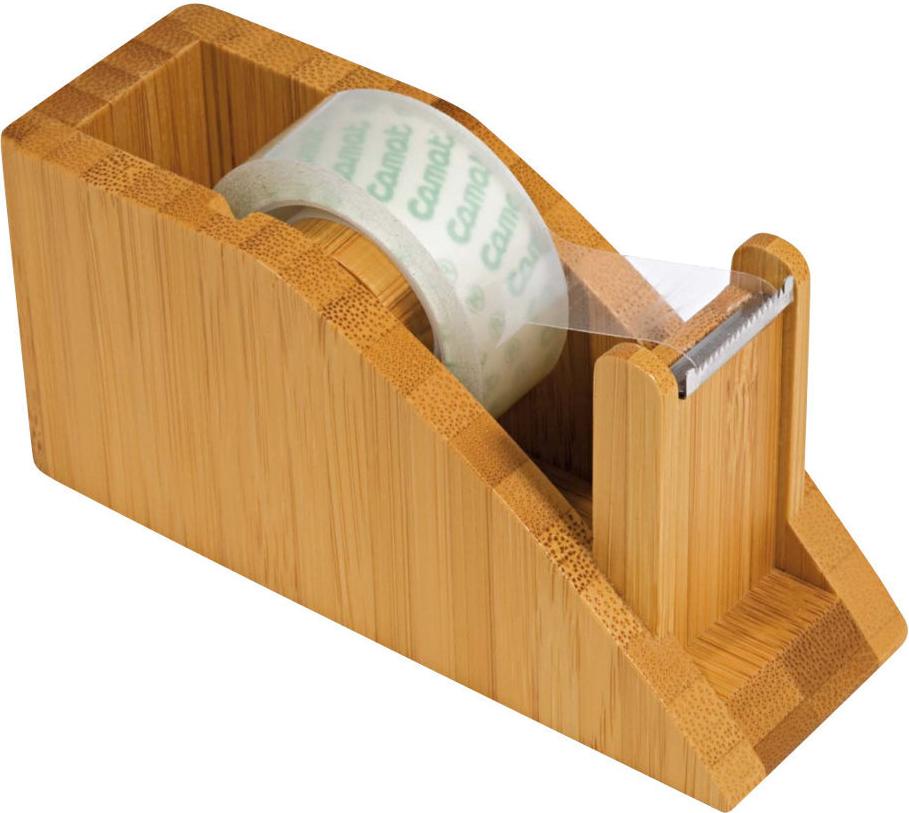 Klebefilm-Abroller für Rollen bis 19 mm Breite, eins von vielen außergewöhnlichen Accessoires aus der Bambus-Schreibtischgarnitur. Bambus wird als schnell nachwachsender Rohstoff nicht nur ökologischen Aspekten ...