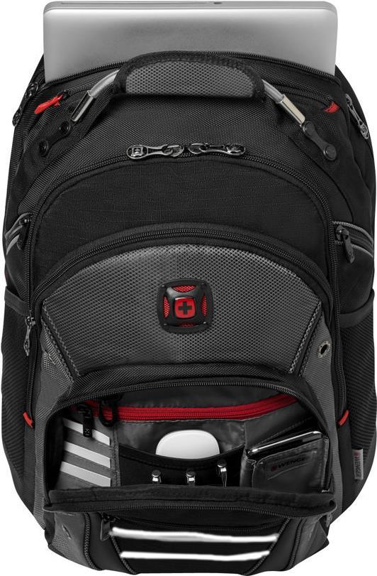 | Funktionen | Laptopfach, Tabletfach, Organizer, CaseBase Stabilisierungsplattform, Mit Kabel verstärkter Tragegriff, Netz-Seitentasche, Reissverschluss-Fronttasche, Stossdämpfende Schulterriemen, atmungsaktive Rückenpolsterung |