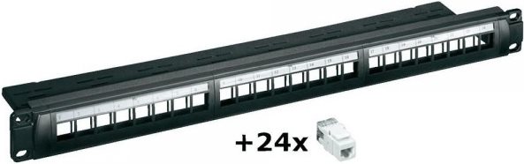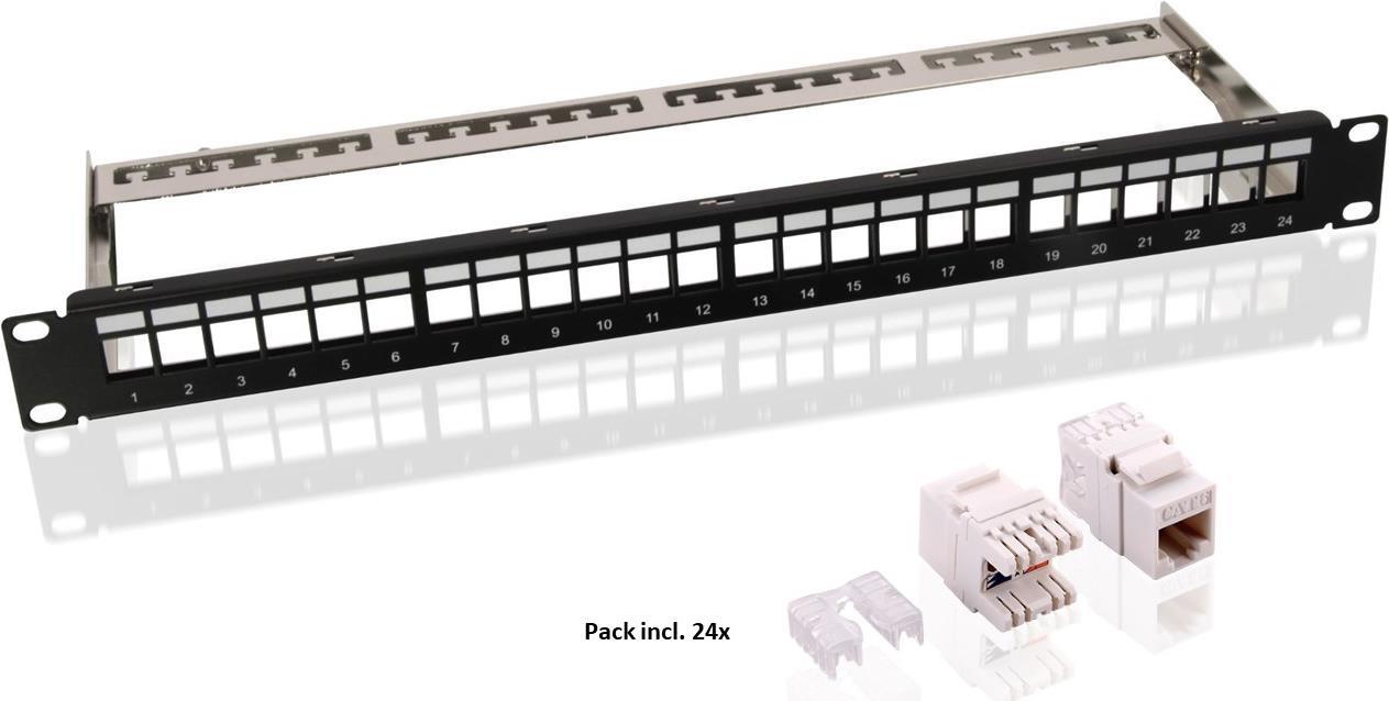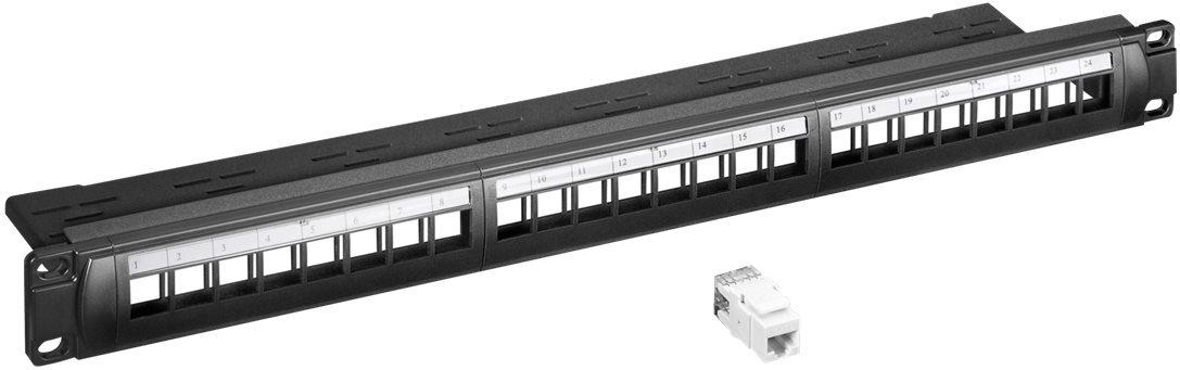 - 24 Port Panel zur Aufnahme von Keystone Jacks SNAP-IN - Beschriftungsfeld - Montagematerial & Schrauben im Lieferumfang - für 19 Zoll Montage geeignet