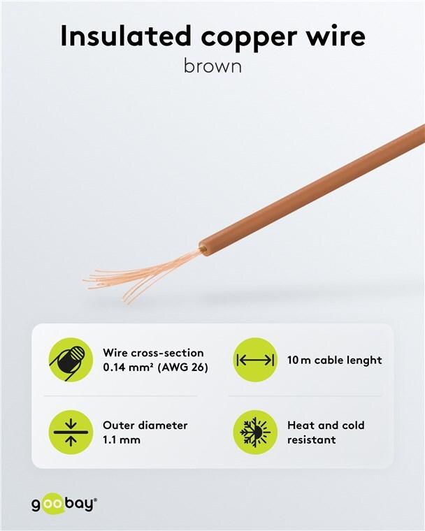 Wentronic Goobay Kupferlitze isoliert, Braun, 10 m - 1-adrig, mehrdrahtig (18 x 0,1 mm) (55040)