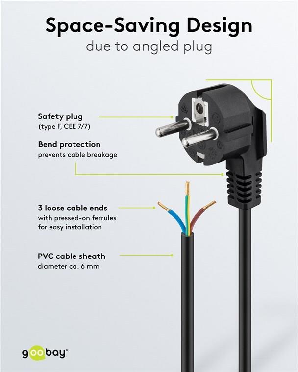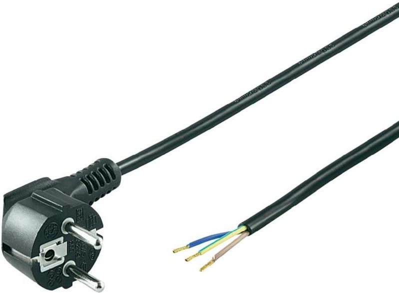 Wentronic Goobay Schutzkontaktkabel abgewinkelt zum Konfektionieren, 3 m, Schwarz - Typ F (Typ F, CEE 7/7) > lose Kabelenden (96033)