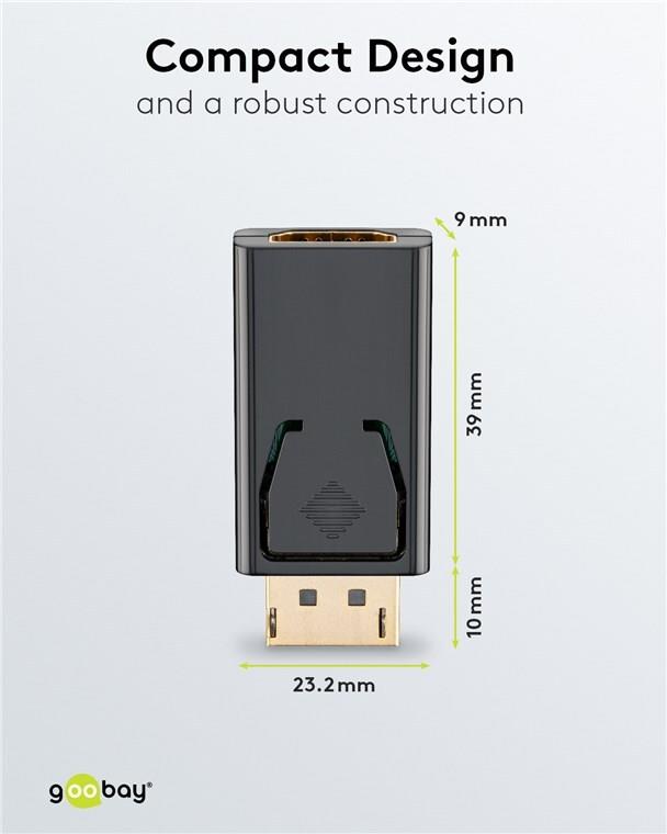 Wentronic Goobay DisplayPort zu HDMI Adapter 1.1, HDMI Standard-Buchse (Typ A) - HDMI Standard-Buchse (Typ A) > DisplayPort-Stecker (51719)