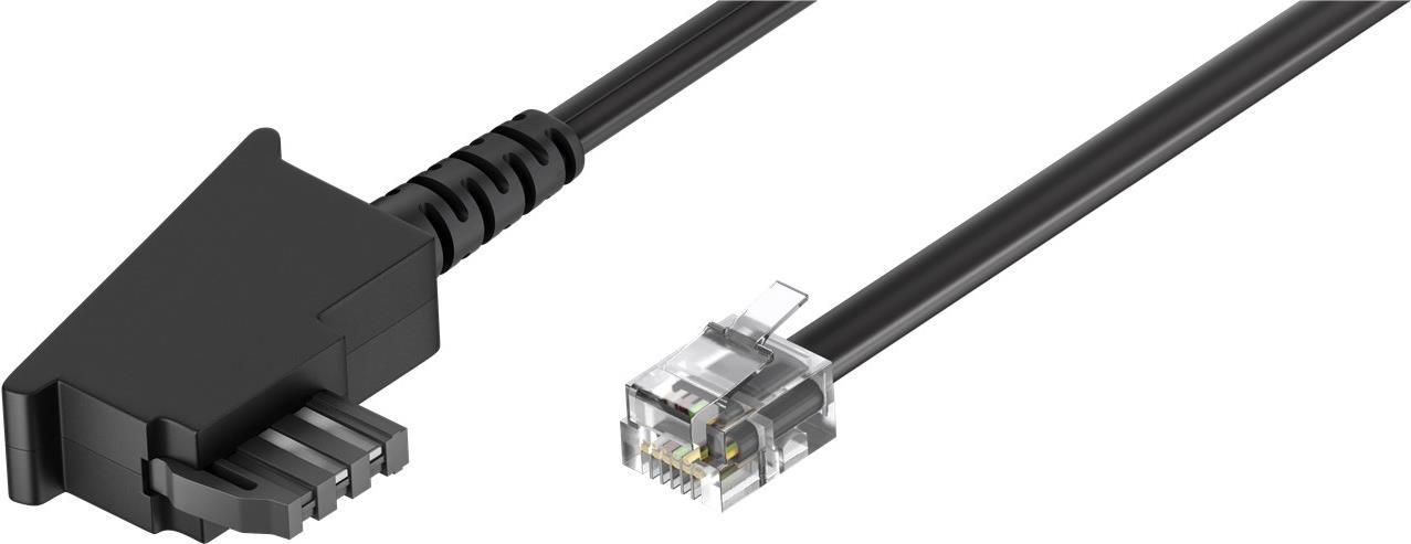 Wentronic Goobay TAE-F-Anschlusskabel (Universal-Pin Out), Schwarz, 3 m - TAE-F-Stecker auf RJ11/RJ14-Stecker (6P4C) (68535)