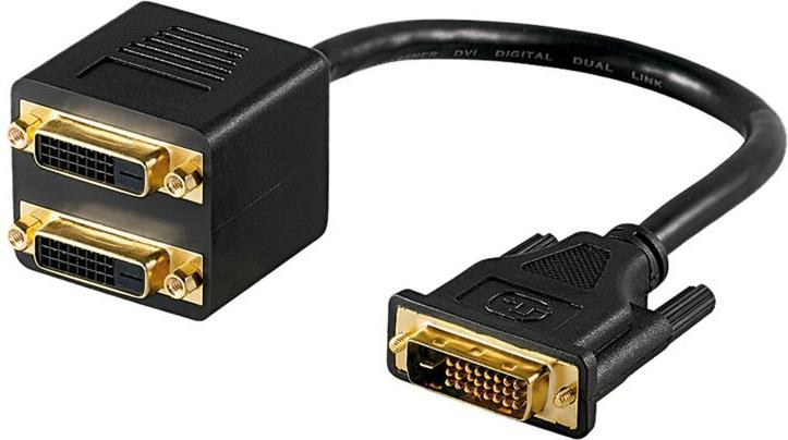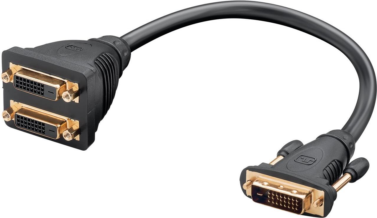 Wentronic Goobay DVI-Stecker > 2x DVI-Buchse, DVI-D-Stecker Dual-Link (24+1-Pin), Schwarz - zum Verbinden von zwei Geräten mit einem DVI-Anschluss (68740)