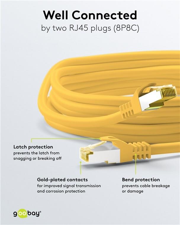Wentronic GoobayCat.7 Rohkabel Patchkabel, S/FTP (PiMF), Gelb, 0.5 m - LSZH halogenfrei, Kupfer, RJ45 Stecker (91575)