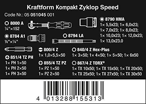 Wera Kraftform Kompakt Zyklop Speed - Knarrenschraubendreher mit Bit-Satz