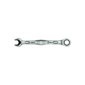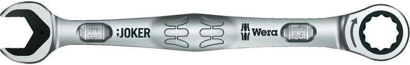 Maul- und Ringratschenschlüssel; Haltefunktion durch Metallplatte im Maul, reduziert die Gefahr des Verlierens von Schrauben und Muttern; auswechselbare Metallplatte im Maul sichert mit extra harten Zähnen Schrauben und Muttern und reduziert die Abrutschgefahr; integrierter Endanschlag kann das Abrutschen vom Schraubenkopf nach unten verhindern und ermöglicht das Aufbringen hoher Drehmomente; die Doppelsechskantgeometrie sorgt für die formschlüssige Verbindung mit Schraube oder Mutter und damit für die Verringerung der Abrutschgefahr; Rückschwenkwinkel von nur 30° auf der Maulseite zur Vermeidung des zeitintensiven Wendens des Schlüssels beim Schrauben; Ratschenmechanik auf der Ringseite mit außergewöhnlich hoher Feinverzahnung von 80 Zähnen für Flexibilität auch in engen Bauräumen; spezielle Schmiedegeometrie für hohe Drehmomentübertragung und hohe Biegungssteifigkeit; leistungsfähiger Chrom-Molybdän-Stahl; Nickel-Chrom Beschichtung für hohen Korrosionsschutz. Mit Farbkennzeichnung und eingeschmiedeter Größenangabe für einfaches Finden des gewünschten Joker.