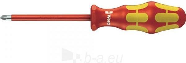 165i PZ/S # 1 x 80 mm VDE-Schraub.-Dreh. Wera VDE-Schraubendreher mit mehrkomponentigem Kraftform-Griff für schnelles und schonendes Arbeiten. Stückgeprüft bei 10.000 Volt. Sechskantabrollschutz gegen lästiges Wegrollen. PlusMinus Profil = Profilkombination aus Pozidriv und Schlitz, unerlässlich für den Einsatz bei Reihenklemmen, Sicherungskästen. Schaltern, Relais etc.Ausstattung: Kraftform Plus Schraubendreher bringen höhere Kraftübertragung bei geringer Anstrengung und schonen das gesamte Hand-Arm-System – auch im Dauereinsatz. Dazu kommt bei der Serie 100 VDE der Sicherheitsgedanke, der bei Wera an oberster Stelle steht. Die Qualität der Klingen übertrifft in Bezug auf Härte und Drehmomentfestigkeit die bekannten Normen. Die Sicherheit bei Arbeiten bis 1.000 Volt wird durch die Stückprüfung jedes einzelnen Werkzeugs auf Durchschlagfestigkeit bei 10.000 Volt gewährleistet. Durch die hervorragend an die Hand angepasste Form des Kraftform-Griffs werden Handverletzungen wie Blasen und Schwielen vermieden. Die für den Griff verwendeten harten Materialien (rote Griffzonen) garantieren schnelles Umgreifen ohne die Gefahr des \"\"Festklebens\"\" der Haut am Griff. Die weicheren, \"\"rutschfesten\"\" Zonen (gelb) ermöglichen die verlustfreie Übertragung hoher Kräfte. Auch bei extremen Einsatzbedingungen ist durch die geprüfte Kaltschlagfestigkeit bei -40 °C die Sicherheit gewährleistet.Die Kennzeichnung des Griffs mit Schraubensymbol und Profilgröße erleichtert das Auffinden des Schraubendrehers in der Werkzeugtasche und am Arbeitsplatz. Der Sechskantabrollschutz verhindert lästiges Wegrollen am Arbeitsplatz.Technische Daten: Abtrieb: Plus/MinusAnwendungsbereich (Schraubendreher): VDEDIN-Norm (Schraubendreher): DIN EN 60900EN-Norm (Schraubendreher): EN 60900Gewicht: 59.1 gGriff-Durchmesser: 33 mmGrifflänge: 98 mmGröße: SL/PZ 1Klingen-Ausführung: RundklingeKlingenlänge: 80 mmMaterial (LOV): WerkzeugstahlMaterial-Eigenschaft: legiert,vernickeltProduktabmessung, Länge: 178 mmSchraubendreher-Art (Kategorisierung): Plus/minus-SchraubendreherSchraubendreher-Besonderheiten: MehrkomponentengriffLieferumfang: 165i PZ/S # 1 x 80 mm
