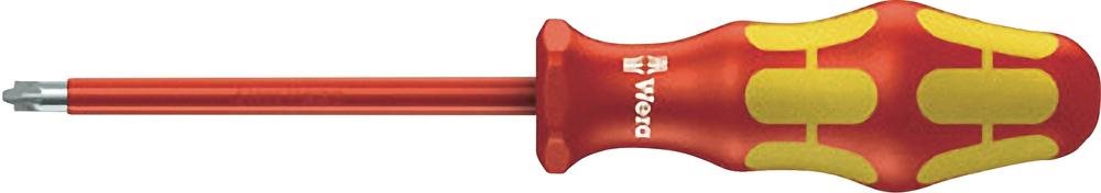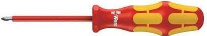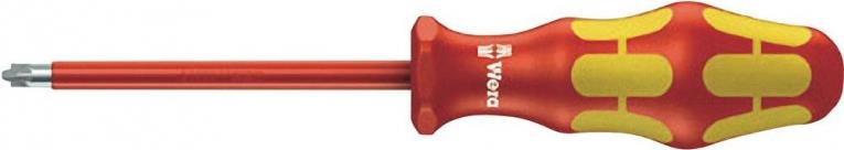 165i PZ/S # 2 x 100 mm VDE-Schrau.-Dreh. Wera VDE-Schraubendreher mit mehrkomponentigem Kraftform-Griff für schnelles und schonendes Arbeiten. Stückgeprüft bei 10.000 Volt. Sechskantabrollschutz gegen lästiges Wegrollen. PlusMinus Profil = Profilkombination aus Pozidriv und Schlitz, unerlässlich für den Einsatz bei Reihenklemmen, Sicherungskästen. Schaltern, Relais etc.Ausstattung: Kraftform Plus Schraubendreher bringen höhere Kraftübertragung bei geringer Anstrengung und schonen das gesamte Hand-Arm-System – auch im Dauereinsatz. Dazu kommt bei der Serie 100 VDE der Sicherheitsgedanke, der bei Wera an oberster Stelle steht. Die Qualität der Klingen übertrifft in Bezug auf Härte und Drehmomentfestigkeit die bekannten Normen. Die Sicherheit bei Arbeiten bis 1.000 Volt wird durch die Stückprüfung jedes einzelnen Werkzeugs auf Durchschlagfestigkeit bei 10.000 Volt gewährleistet. Durch die hervorragend an die Hand angepasste Form des Kraftform-Griffs werden Handverletzungen wie Blasen und Schwielen vermieden. Die für den Griff verwendeten harten Materialien (rote Griffzonen) garantieren schnelles Umgreifen ohne die Gefahr des \"\"Festklebens\"\" der Haut am Griff. Die weicheren, \"\"rutschfesten\"\" Zonen (gelb) ermöglichen die verlustfreie Übertragung hoher Kräfte. Auch bei extremen Einsatzbedingungen ist durch die geprüfte Kaltschlagfestigkeit bei -40 °C die Sicherheit gewährleistet.Die Kennzeichnung des Griffs mit Schraubensymbol und Profilgröße erleichtert das Auffinden des Schraubendrehers in der Werkzeugtasche und am Arbeitsplatz. Der Sechskantabrollschutz verhindert lästiges Wegrollen am Arbeitsplatz.Technische Daten: Abtrieb: Plus/MinusAnwendungsbereich (Schraubendreher): VDEDIN-Norm (Schraubendreher): DIN EN 60900EN-Norm (Schraubendreher): EN 60900Gewicht: 59.1 gGriff-Durchmesser: 37 mmGrifflänge: 105 mmGröße: SL/PZ 2Klingen-Ausführung: RundklingeKlingenlänge: 100 mmMaterial (LOV): WerkzeugstahlMaterial-Eigenschaft: legiert,vernickeltProduktabmessung, Länge: 205 mmSchraubendreher-Art (Kategorisierung): Plus/minus-SchraubendreherSchraubendreher-Besonderheiten: MehrkomponentengriffLieferumfang: 165i PZ/S # 2 x 100 mm