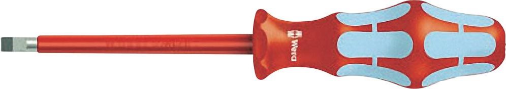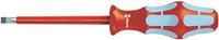 3160i 0,5 x 3,0 x 80 mm VDE-Edelst.S.D. Wera VDE-Schraubendreher aus Edelstahl. Für hochwertige en. Mehrkomponentiger Kraftform Griff für hohe Arbeitsgeschwindigkeiten und besonders ergonomisches Verschrauben. Mit Sechskantabrollschutz gegen Wegrollen. Mit Griffkennzeichnung zum leichteren Finden und Sortieren des Werkzeugs. Mit Lasertip-Spitze: Microraue Oberfläche, die sich im Schraubenkopf festbeisst. Dadurch weniger Ausrutscher, weniger Aufpressdruck notwendig. Aus Edelstahl gegen Rost, dadurch auch Vermeidung von Fremdrost. Isolierte VDE Klingen, stückgeprüft bei 10.000 Volt im Wasserbad für sicheres Arbeiten bis 1.000 Volt.Ausstattung: Kraftform Plus Schraubendreher aus Edelstahl gegen unansehnlichen Flug- oder Fremdrost.Kraftform Plus Schraubendreher bringen höhere Kraftübertragung bei geringer Anstrengung und schonen das gesamte Hand-Arm-System – auch im Dauereinsatz. Dazu kommt bei der Serie VDE der Sicherheitsgedanke, der bei Wera an oberster Stelle steht. Die Qualität der Klingen übertrifft in Bezug auf Härte und Drehmomentfestigkeit die bekannten Normen. Die Sicherheit bei Arbeiten bis 1.000 Volt wird durch die Stückprüfung jedes einzelnen Werkzeugs auf Durchschlagfestigkeit bei 10.000 Volt gewährleistet. Durch die hervorragend an die Hand angepasste Form des Kraftform-Griffs werden Handverletzungen wie Blasen und Schwielen vermieden. Die für den Griff verwendeten harten Materialien (rote Griffzonen) garantieren schnelles Umgreifen ohne die Gefahr des \"\"Festklebens\"\" der Haut am Griff. Die weicheren, \"\"rutschfesten\"\" Zonen (hellblau) ermöglichen die verlustfreie Übertragung hoher Kräfte. Auch bei extremen Einsatzbedingungen ist durch die geprüfte Kaltschlagfestigkeit bei -40 °C die Sicherheit gewährleistet.Die Kennzeichnung des Griffs mit Schraubensymbol und Profilgröße erleichtert das Auffinden des Schraubendrehers in der Werkzeugtasche und am Arbeitsplatz. Der Sechskantabrollschutz verhindert lästiges Wegrollen am Arbeitsplatz.- Wie kann ich das Herausrutschen aus dem Schraubenkopf verhindern?Immer wieder passiert es, dass man beim Verschrauben aus der Schraube rutscht. Manchmal kann man dabei möglicherweise sogar in unter Spannung stehende Bauteile abrutschen. Die Spitze von Wera Lasertip-Schraubendrehern wird mit Laserstrahlen mikroskopisch fein aufgeraut. Diese raue Oberfläche \"\"beißt\"\" sich förmlich im Schraubenkopf fest. Dies vermittelt ein sicheres Gefühl, gerade wenn unter Spannung gearbeitet wird.Durch Laserbehandlung wird auf die Klingenspitze eine microraue Oberfläche mit Randhärten von bis zu 1000 Vickers eingebrannt. Sie beißt sich förmlich im Schraubenkopf fest. Der Vorteil: weniger Ausrutscher, höhere Sicherheit.Die Schraubendrehersätze werden immer mit Rack geliefert, das an der Wand befestigt werden kann. So ist ordentliche Aufbewahrung und schneller Zugriff gewährleistet.Technische Daten: Abtrieb: SchlitzAnwendungsbereich (Schraubendreher): VDEGrifflänge: 81 mmKlingen-Ausführung: RundklingeKlingen-Durchmesser: 6 mmKlingenbreite: 3 mmKlingendicke: 0.5 mmKlingenlänge: 80 mmMaterial (LOV): EdelstahlProduktabmessung, Länge: 161 mmSchraubendreher-Art (Kategorisierung): Schlitz-SchraubendreherSchraubendreher-Besonderheiten: Mehrkomponentengriff, EdelstahlLieferumfang: 3160i 0,5 x 3,0 x 80 mm