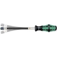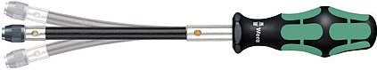 Bits-Handhalter mit flexiblem Schaft Bits-Handhalter von Wera. Mehrkomponentiger Kraftform Griff für hohe Arbeitsgeschwindigkeiten und besonders ergonomisches Verschrauben. Geeignet für die Aufnahme von Bits mit 1/4\"\"-Außensechskantantrieb nach DIN 3126-C 6,3 (ISO 1173) und Wera Reihe 1. Mit Schnellwechselfutter. Mit Sechskantabrollschutz gegen Wegrollen.Ausstattung: Hochwertiger Bit-Handhalter von Wera im Kraftform Plus Design. Kraftform Plus Schraubendreher bringen höhere Kraftübertragung bei geringer Anstrengung und schonen das gesamte Hand-Arm-System – auch im Dauereinsatz. Durch die hervorragend an die Hand angepasste Form des Kraftform-Griffs werden Handverletzungen wie Blasen und Schwielen vermieden. Die für den Griff verwendeten harten Materialien (schwarze Griffzonen) garantieren schnelles Umgreifen ohne die Gefahr des \"\"Festklebens\"\" der Haut am Griff. Die weicheren, \"\"rutschfesten\"\" Zonen (grün) ermöglichen die verlustfreie Übertragung hoher Kräfte. Die Kennzeichnung des Griffs mit Schraubensymbol und Profilgröße erleichtert das Auffinden des Schraubendrehers in der Werkzeugtasche und am Arbeitsplatz. Der Sechskantabrollschutz verhindert lästiges Wegrollen am Arbeitsplatz.Technische Daten: Antrieb (Schraubendreher): 1/4\"\" (6.3 mm)Anwendungsbereich (Schraubendreher): WerkstattDIN-Norm (Schraubendreher): DIN 3126, DIN ISO 1173Grifflänge: 98 mmKlingenlänge: 177 mmProduktabmessung, Länge: 275 mmSchraubendreher-Art (Kategorisierung): Bit-SchraubendreherSchraubendreher-Besonderheiten: Mehrkomponentengriff, biegsame KlingeLieferumfang: 392 m. flexiblem Schaft