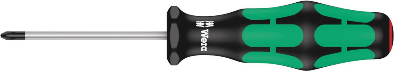 350 PH 1 x 200 mm SchraubendreherHochwertiger Kraftform Plus Schraubendreher von Wera. Mehrkomponentiger Kraftform Griff. Lasertip-Spitzen: Microraue Oberfläche, die sich im Schraubenkopf festbeisst. Dadurch weniger Ausrutscher, weniger Aufpressdruck notwendig. Mit Sechskantabrollschutz gegen Wegrollen. Mit Griffkennzeichnung zum leichteren Finden und Sortieren des Werkzeugs.Ausstattung: Kraftform Plus Schraubendreher bringen höhere Kraftübertragung bei geringer Anstrengung und schonen das gesamte Hand-Arm-System – auch im Dauereinsatz. Durch die hervorragend an die Hand angepasste Form des Kraftform-Griffs werden Handverletzungen wie Blasen und Schwielen vermieden. Die für den Griff verwendeten harten Materialien (schwarze Griffzonen) garantieren schnelles Umgreifen ohne die Gefahr des \"\"Festklebens\"\" der Haut am Griff. Die weicheren, \"\"rutschfesten\"\" Zonen (grün) ermöglichen die verlustfreie Übertragung hoher Kräfte. Die Kennzeichnung des Griffs mit Schraubensymbol und Profilgröße erleichtert das Auffinden des Schraubendrehers in der Werkzeugtasche und am Arbeitsplatz. Der Sechskantabrollschutz verhindert lästiges Wegrollen am Arbeitsplatz.- Wie kann ich das Herausrutschen aus dem Schraubenkopf verhindern?Immer wieder passiert es, dass man beim Verschrauben aus der Schraube rutscht. Manchmal kann man dabei möglicherweise sogar in unter Spannung stehende Bauteile abrutschen. Die Spitze von Wera Lasertip-Schraubendrehern wird mit Laserstrahlen mikroskopisch fein aufgeraut. Diese raue Oberfläche \"\"beißt\"\" sich förmlich im Schraubenkopf fest. Dies vermittelt ein sicheres Gefühl, gerade wenn unter Spannung gearbeitet wird.Durch Laserbehandlung wird auf die Klingenspitze eine microraue Oberfläche mit Randhärten von bis zu 1000 Vickers eingebrannt. Sie beißt sich förmlich im Schraubenkopf fest. Der Vorteil: weniger Ausrutscher, höhere Sicherheit.Die Schraubendrehersätze werden immer mit Rack geliefert, das an der Wand befestigt werden kann. So ist ordentliche Aufbewahrung und schneller Zugriff gewährleistet.Technische Daten: Abtrieb: Kreuzschlitz PhillipsAnwendungsbereich (Schraubendreher): WerkstattGewicht: 74 gGriff-Durchmesser: 33 mmGrifflänge: 98 mmGröße: PH 1Klingen-Ausführung: RundklingeKlingenlänge: 200 mmMaterial (LOV): WerkzeugstahlMaterial-Eigenschaft: legiert, nicromattProduktabmessung, Länge: 298 mmSchraubendreher-Art (Kategorisierung): Kreuzschlitz-SchraubendreherSchraubendreher-Besonderheiten: MehrkomponentengriffLieferumfang: 350 PH Gr. 1 x 200 mm