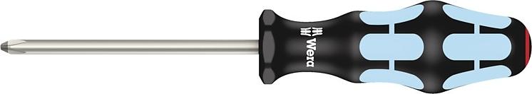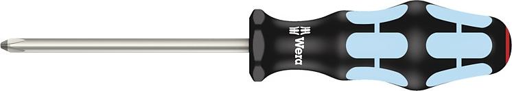 3350 PH 0 x 60 mm Edelstahl-Schraubendr. Wera Schraubendreher aus Edelstahl. Für hochwertige en. Mehrkomponentiger Kraftform Griff für hohe Arbeitsgeschwindigkeiten und besonders ergonomisches Verschrauben. Mit Sechskantabrollschutz gegen Wegrollen. Mit Griffkennzeichnung zum leichteren Finden und Sortieren des Werkzeugs. Aus Edelstahl gegen Rost, dadurch auch Vermeidung von Fremdrost.Ausstattung: Kraftform Plus Schraubendreher aus Edelstahl gegen unansehnlichen Flug- oder Fremdrost. Kraftform Plus Schraubendreher bringen höhere Kraftübertragung bei geringer Anstrengung und schonen das gesamte Hand-Arm-System – auch im Dauereinsatz. Durch die hervorragend an die Hand angepasste Form des Kraftform-Griffs werden Handverletzungen wie Blasen und Schwielen vermieden. Die für den Griff verwendeten harten Materialien (schwarze Griffzonen) garantieren schnelles Umgreifen ohne die Gefahr des \"\"Festklebens\"\" der Haut am Griff. Die weicheren, \"\"rutschfesten\"\" Zonen (hellblau) ermöglichen die verlustfreie Übertragung hoher Kräfte. Die Kennzeichnung des Griffs mit Schraubensymbol und Profilgröße erleichtert das Auffinden des Schraubendrehers in der Werkzeugtasche und am Arbeitsplatz. Der Sechskantabrollschutz verhindert lästiges Wegrollen am Arbeitsplatz.Technische Daten: Abtrieb: Kreuzschlitz PhillipsAnwendungsbereich (Schraubendreher): WerkstattGewicht: 20 gGriff-Durchmesser: 26 mmGrifflänge: 81 mmGröße: PH 0Klingen-Ausführung: RundklingeKlingenlänge: 60 mmMaterial (LOV): EdelstahlProduktabmessung, Länge: 141 mmSchraubendreher-Art (Kategorisierung): Kreuzschlitz-SchraubendreherSchraubendreher-Besonderheiten: Mehrkomponentengriff, EdelstahlLieferumfang: 3350 PH 0 x 60 mm