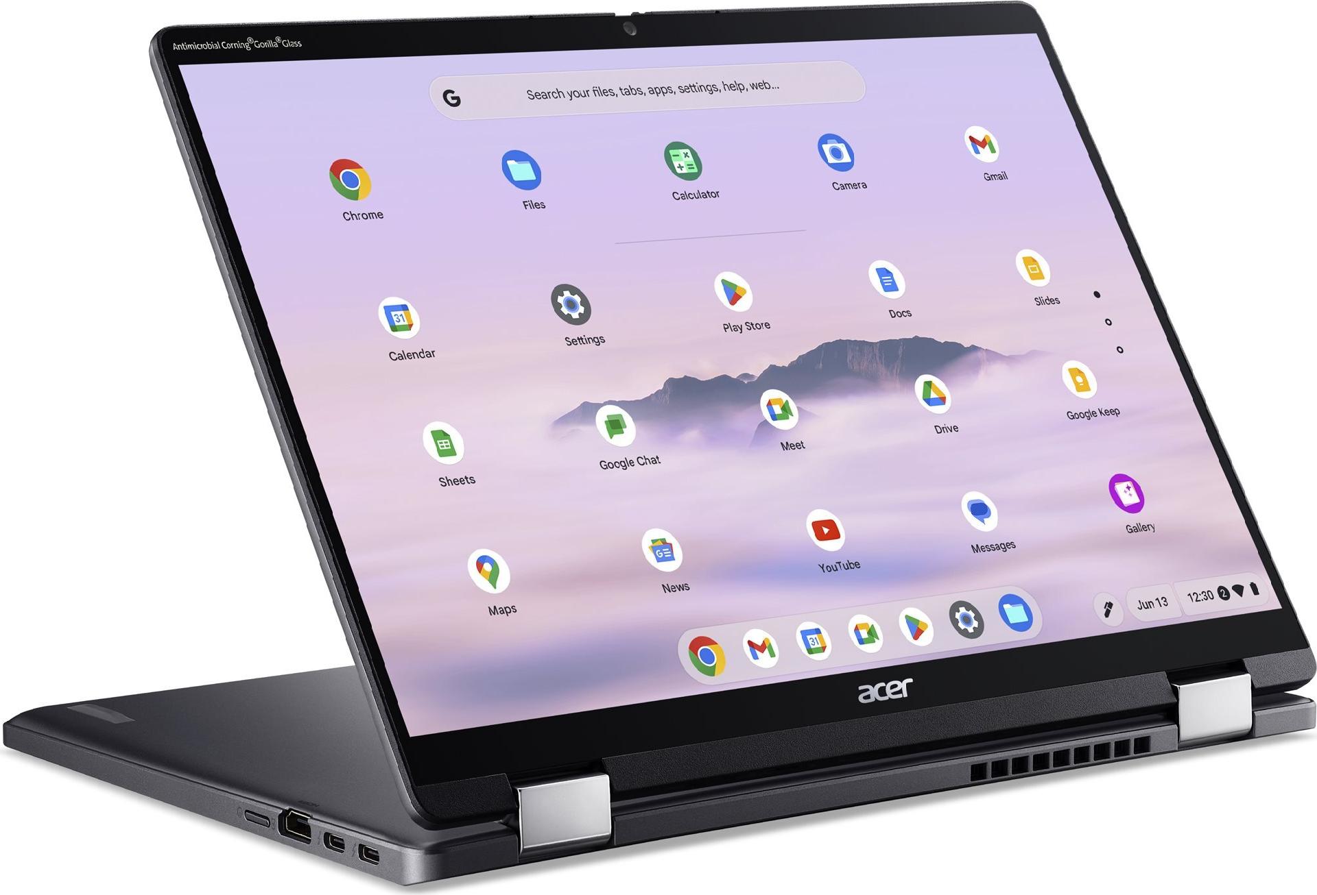 Das Acer Chromebook Plus Spin 714 ist ein vielseitiges 2-in-1-Gerät, das sowohl für Produktivität als auch für Unterhaltung entwickelt wurde. Mit einem 14-Zoll-Touchscreen-Display mit einer nativen Auflösung von 1920 x 1200 wird das visuelle Erlebnis durch einen 100 %igen sRGB-Farbraum verbessert, sodass alles, von Tabellenkalkulationen bis hin zu Filmen, lebendig und klar dargestellt wird. Das Display verfügt außerdem über Corning Gorilla Glass 3 und eine antimikrobielle Beschichtung, die für Langlebigkeit und Sauberkeit sorgen. Dank des 360°-Flip-Designs können Benutzer das Chromebook ganz einfach vom Laptop- in den Tablet-Modus umwandeln.