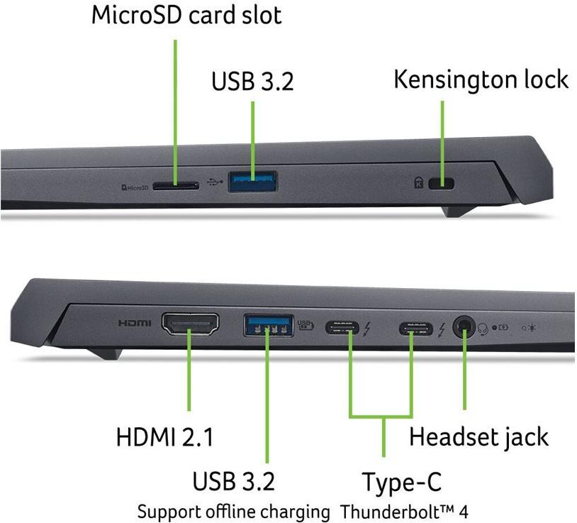 | Schnittstellendetails | HDMI 2 x USB4 (supports Thunderbolt 4, DisplayPort Alt Mode) (DC-In Combo, Spannungsversorgung) USB 3.2 Gen 2 (Mit Ladefunktion nach Abschaltung) USB 3.2 Gen 1 Kopfhörer-/Mikrofonkombinationsbuchse |