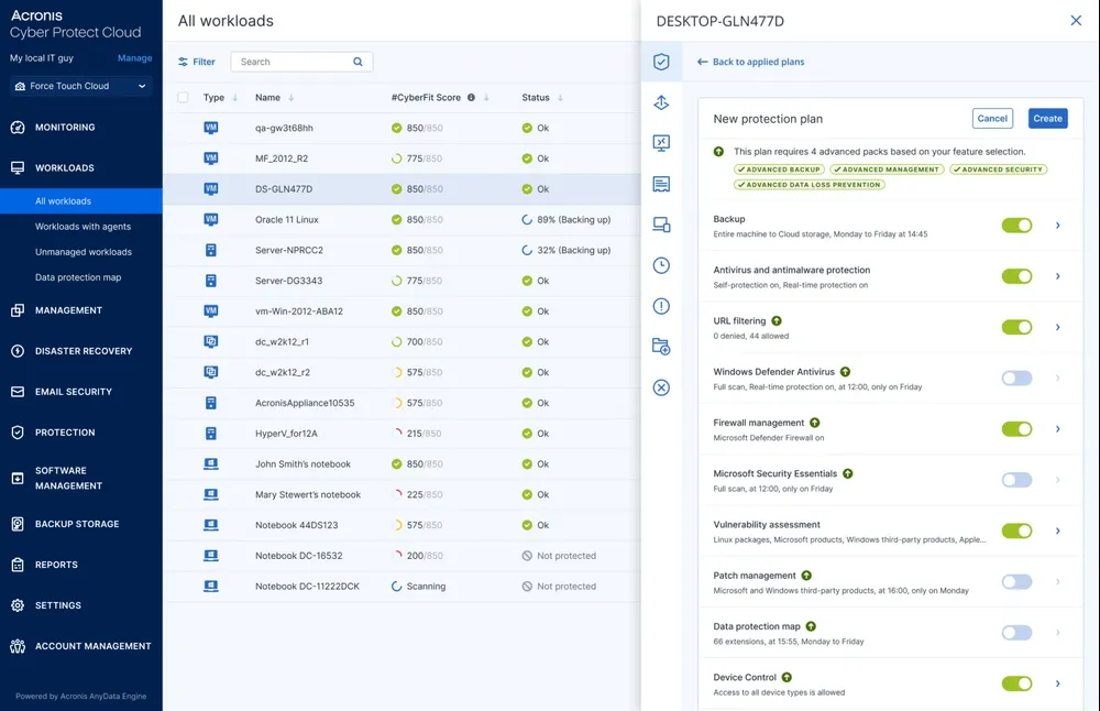 Acronis Cyber Protect Cloud vereint professionelle Backup-Funktionen mit einer KI-basierten Anti-malware Protection der nächsten Generation und unternehmensgerechten Endpoint Protection Management-Fähigkeiten in einer einzigen Lösung. Dank dieser Integration und Automatisierung können Service Provider mit unübertroffener Leichtigkeit und reduzierter Komplexität ihre Produktivität steigern und die Betriebskosten senken.
