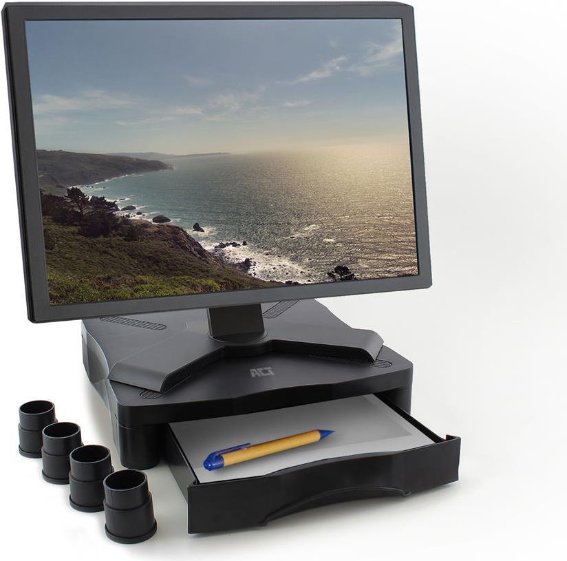 Der AC8200 Monitor Riser hebt Ihren Monitor auf eine bequeme Höhe. Organisieren Sie Ihre Kabel mit dem Kabelmanagementsystem. In der praktischen Schublade können Sie Papiere und Schreibwaren im A4-Format aufbewahren. Die ...