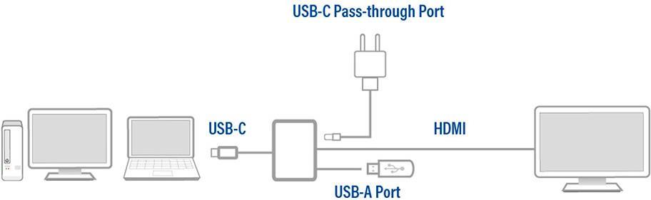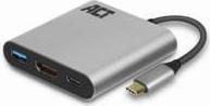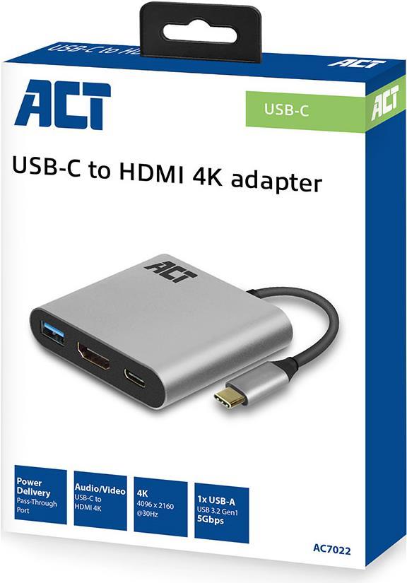 ACT USB-C to HDMI female adapter with PD Pass-Through 60W, 4K, USB-A USB-C - HDMI, USB-A, PD 0,15M (AC7022)