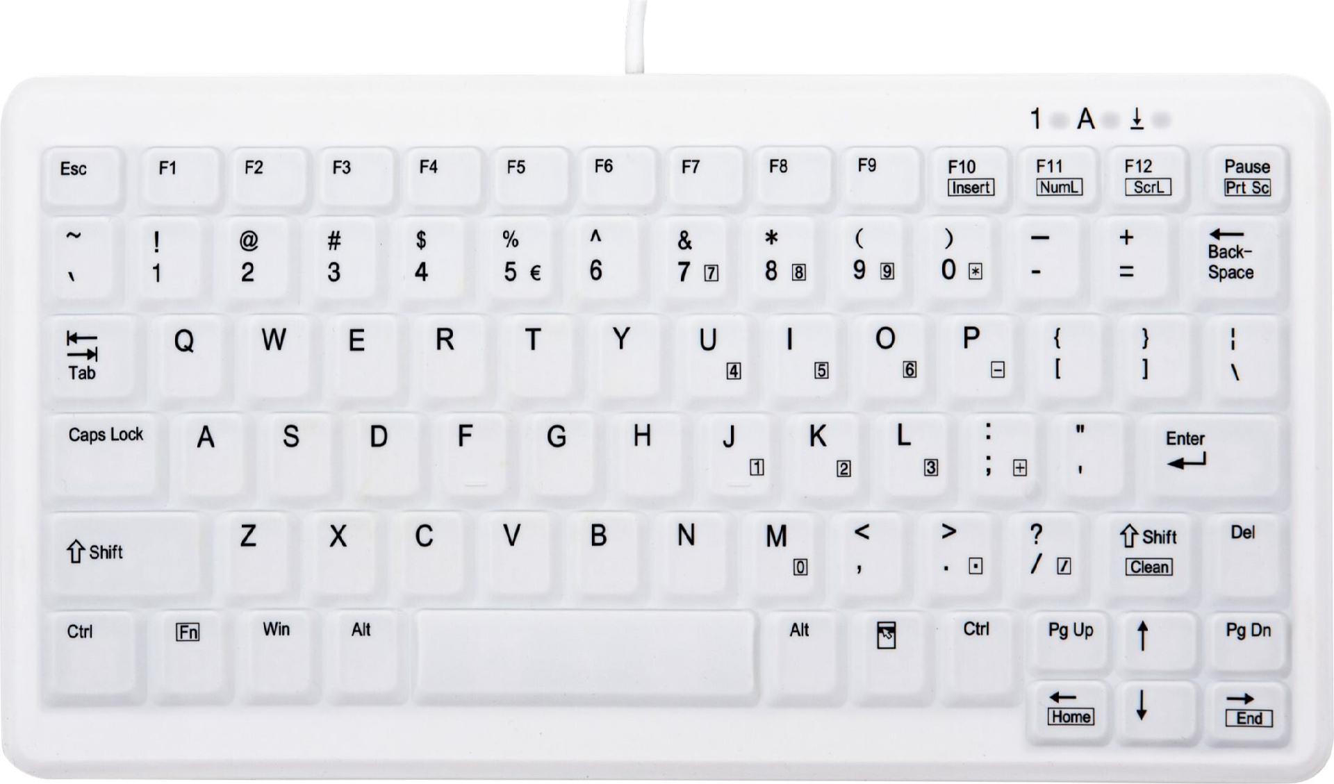 Die kompakte Hygienetastatur AK-C4110 ist eine hochwertige PC-Tastatur im Notebook-Design. Die IP68 Vollversiegelung schützt das Tastenfeld gegen Eindringen von Schmutz und Flüssigkeiten. Aufgrund ihrer geringen Größe ist sie besonders für den Einsatz bei geringen Platzverhältnissen geeignet.