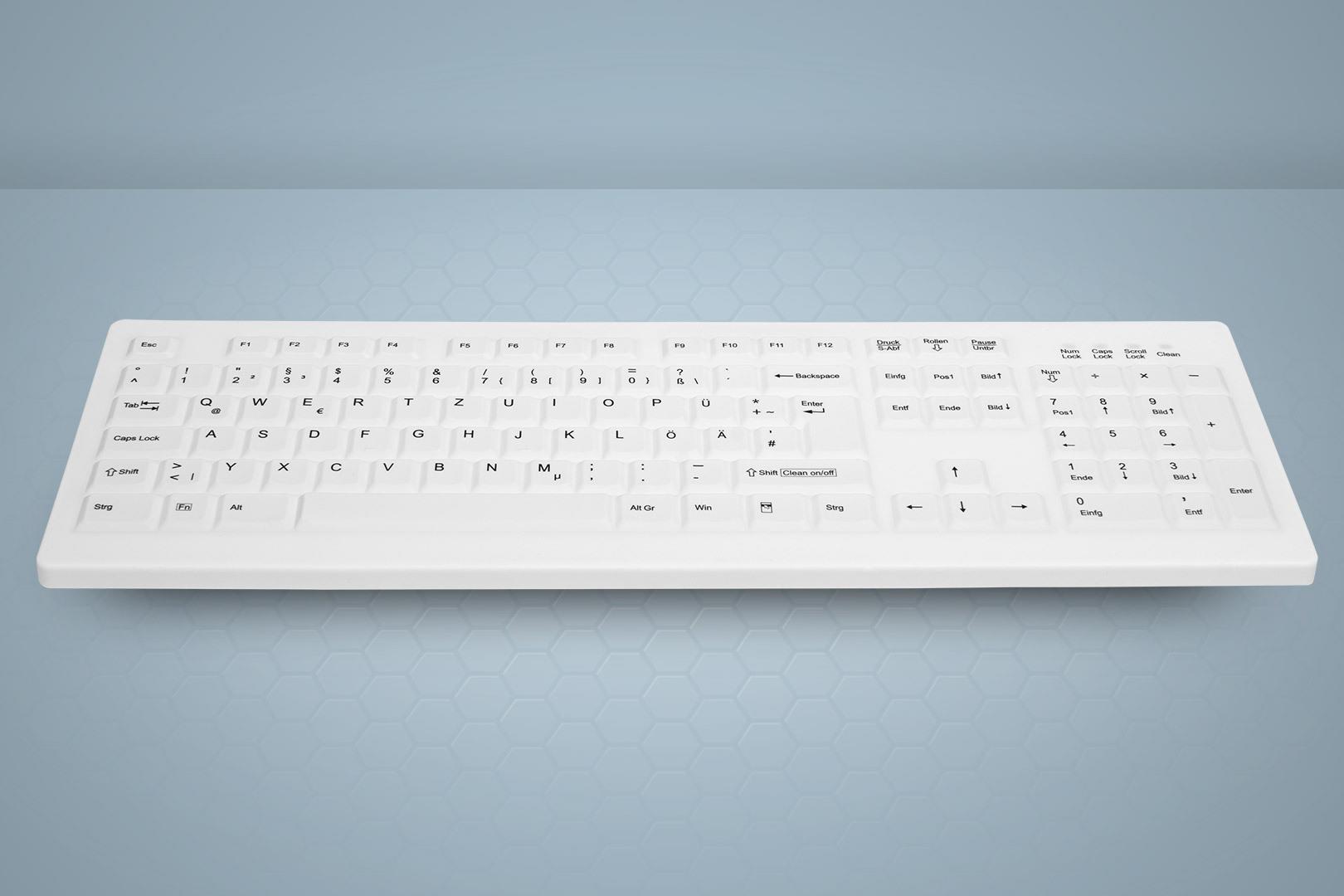 Active Key AK-C8100F-U1 Desinfizierbare PC-Tastatur mit CleanFunction weiß US (AK-C8100F-U1-W/US)