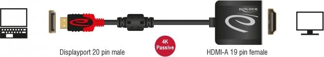 DeLOCK 4K Passive - Videoanschluß - DisplayPort / HDMI - 20 cm |