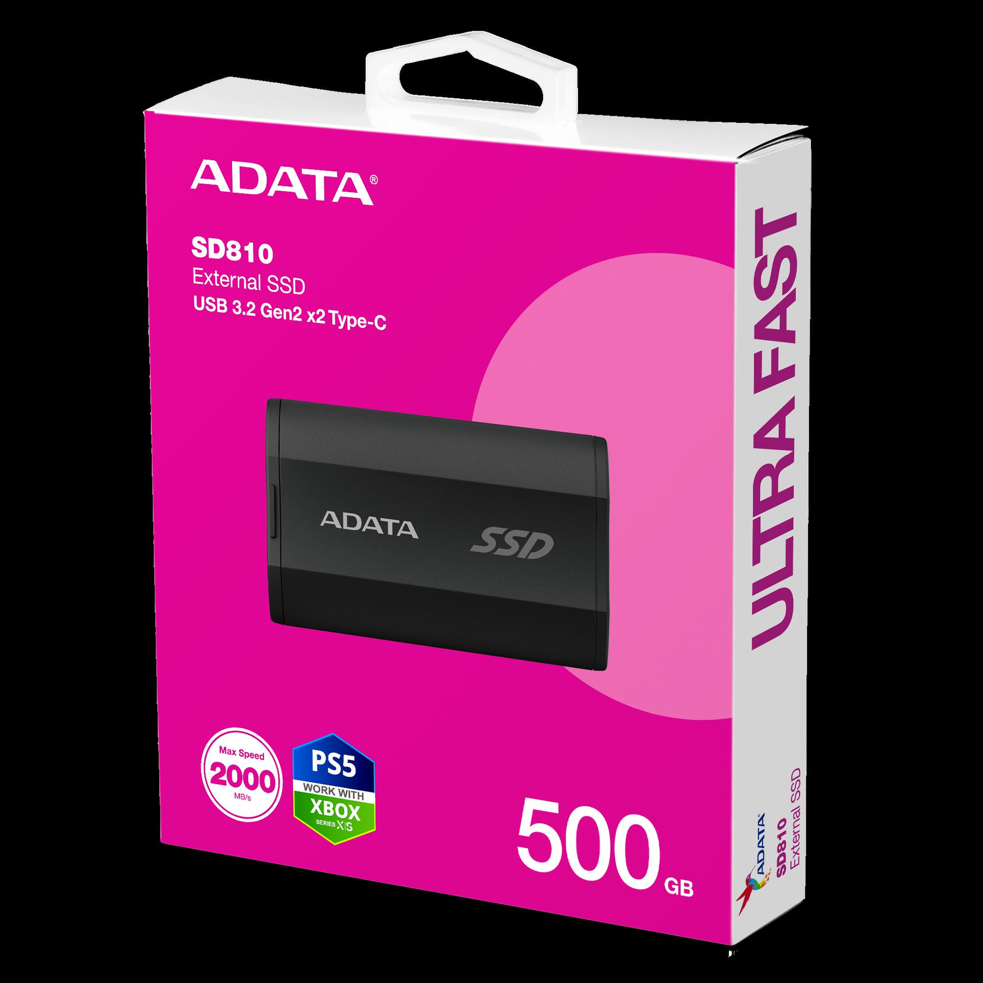 ADATA SD810 - SSD - 500GB - extern (tragbar) - USB 3,2 Gen 2 (USB-C Steckverbinder) - Schwarz (SD810-500G-CBK)