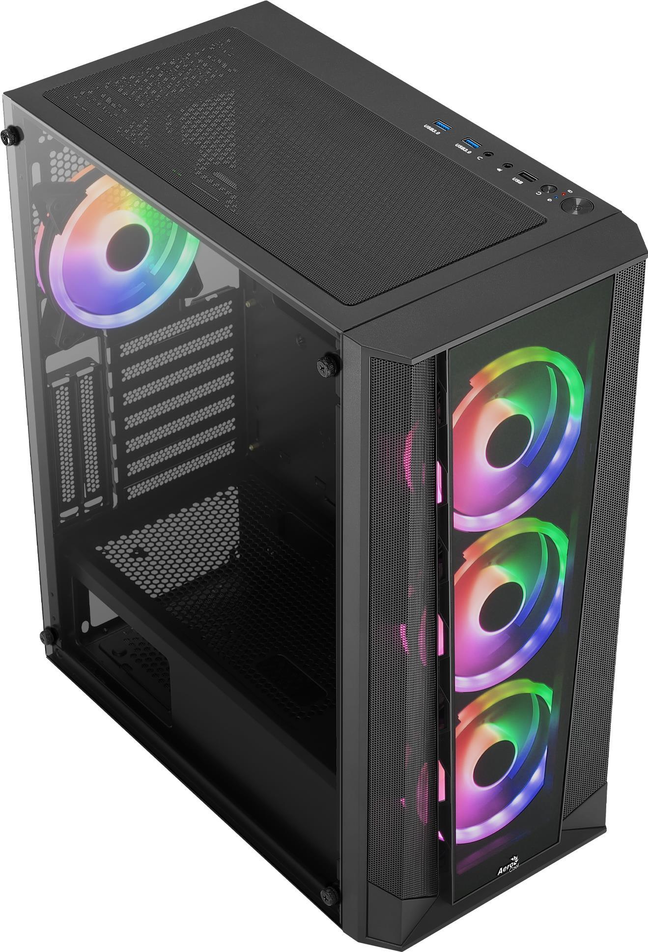 Aerocool Prism ARGB. Typ: PC, Produktfarbe: Schwarz, Unterstützte Motherboards Formfaktoren: ATX, micro ATX, Mini-ITX. Unterstützte Stromversorgungs-Formfaktoren: ATX. Installierte Lüfter (Vorderseite): 3x 120 mm, Durchmesser unterstützte Vorderseitenlüfter: 120,140 mm, Installierte Lüfter hinten: 1x 120 mm. Breite: 216,7 mm, Tiefe: 403 mm, Höhe: 477 mm (ACCM-PB29143.11)