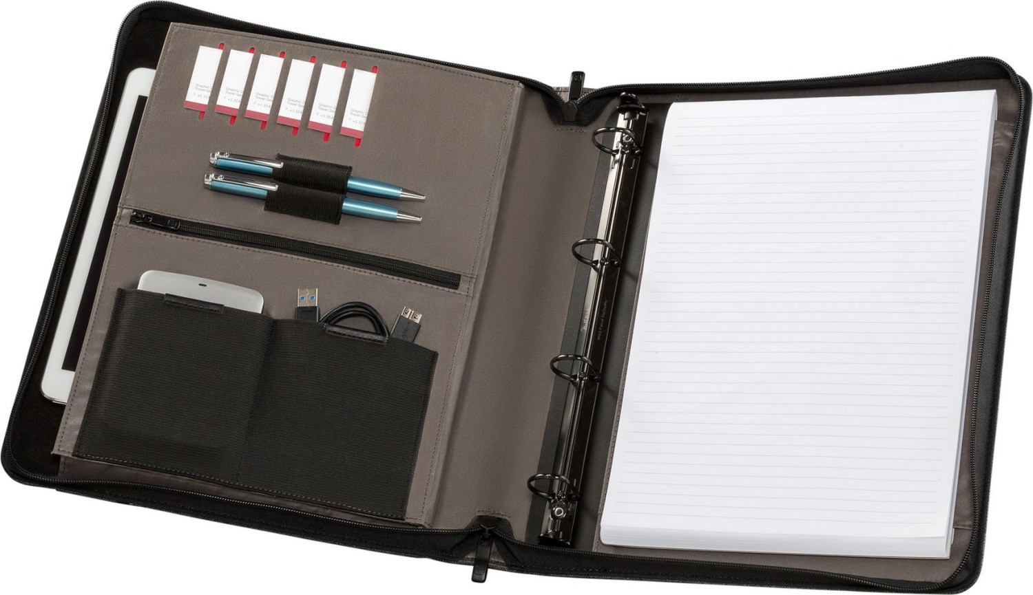 Zusätzliche Fächer Stifte, Visitenkarten, externe Tasche, Schnüre