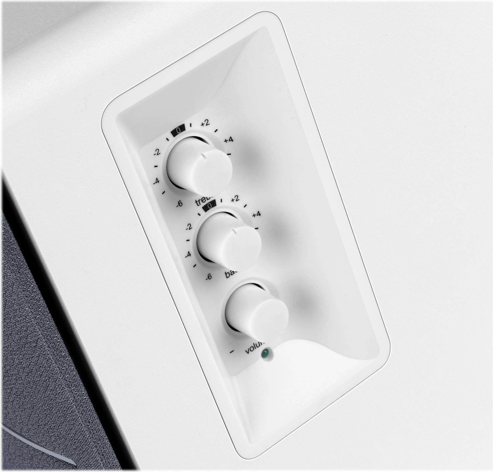 Passen Sie Ihr Hörerlebnis mit den Reglern für Bässe, Höhen und Lautstärke an den aktiven Regallautsprechern an. Der hochwertige Klang dieser Regallautsprecher liefert einen präzisen, dröhnenden Mitteltonbereich, der jeden Hörer begeistert. Eine kompakte, handliche Fernbedienung ist im Lieferumfang enthalten. Sie können die Lautstärke regeln und die Lautsprecher bei Bedarf stumm schalten, ohne die Lautsprecher erreichen zu müssen. Der Edifier R1280T verfügt über eine integrierte Klangregelung an der Seite des Aktivlautsprechers. Je nach Vorliebe können Sie die Höhen und Bässe in einem Bereich von -6 bis +6 db einstellen. Die digitale Lautstärkeregelung wird bei jedem Einschalten der Lautsprecher automatisch auf einen angenehmen Pegel eingestellt.