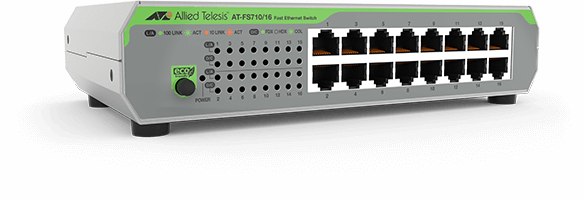 Allied Telesis 16-P 10/100TX INT PSU EU POWER 16-port 10/100TX unmanaged switch with internal PSU f/ European power cord (AT-FS710/16-50)