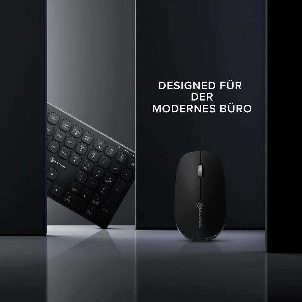 ALOGIC ASKBT3WC-DE Tastatur Maus enthalten Heimbüro RF Wireless + Bluetooth QWERTZ Deutsch Schwarz (ASKBT3WC-DE)